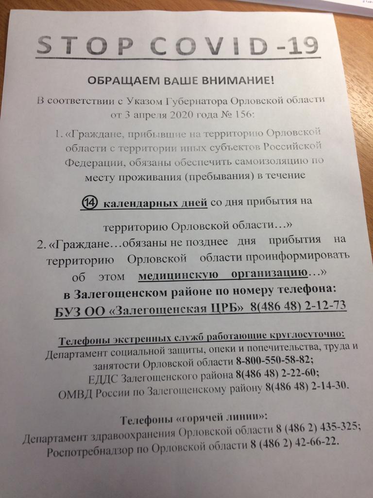 -Вот уже неделю мы пытаемся донести до людей: если к ним приезжают – с вахты ли, с учёбы из Орла, – нужно звонить в сельсовет, в районную больницу и принять самоизоляцию. Слушаются не все. ИНогда приходится прибегать к помощи полиции, – рассказала замглавы администрации Хотынецкого района Алла Целковская.