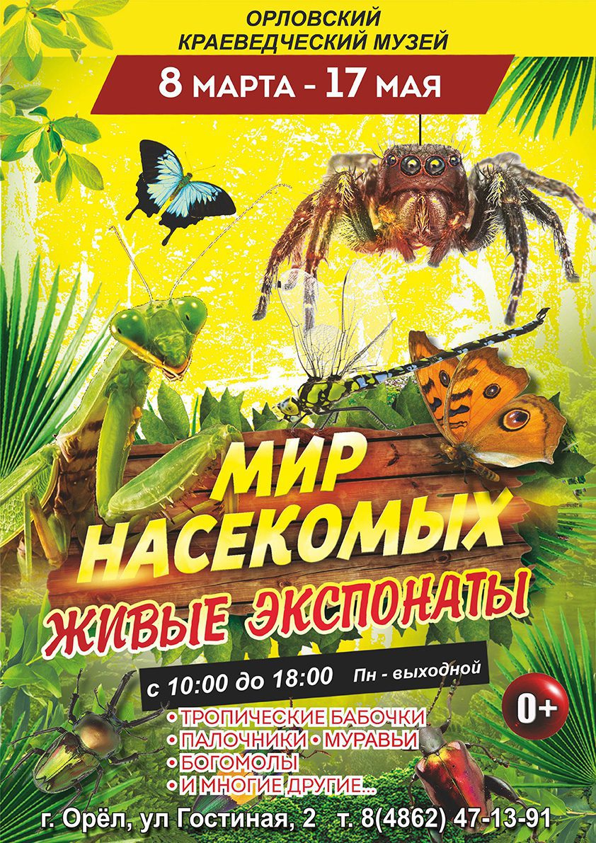 Также будут представлены редкие виды муравьёв, богомолы, палочники и многие другие. 0+
