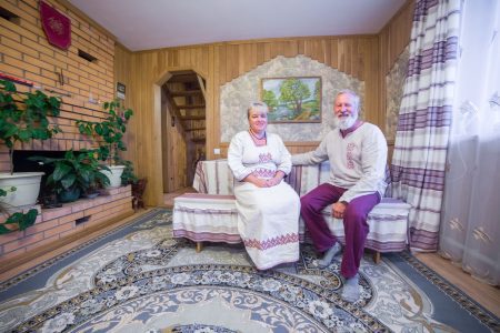 На пороге нас ждёт Надежда – светловолосая женщина, одетая под стать мужу, в длинное белое платье с вышивкой.
