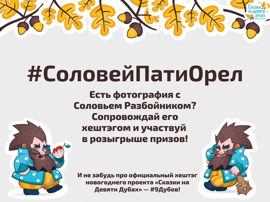 На данный момент под «девятью дубами» помечено всего то 102 фотографии. Видимо, решив расширить аудиторию праздника, власть пошла на беспрецедентно смелый шаг. Встречайте, новый официальный хештег нового года #СоловейПатиОрел!