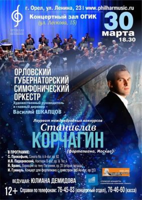 Помимо выступления московского пианиста, орловцы смогут насладиться игрой местного губернаторского симфонического оркестра. В программе – сонаты Сергея Прокофьева, ноктюрны Игнация Падеревского и вариации на тему Паганини.
