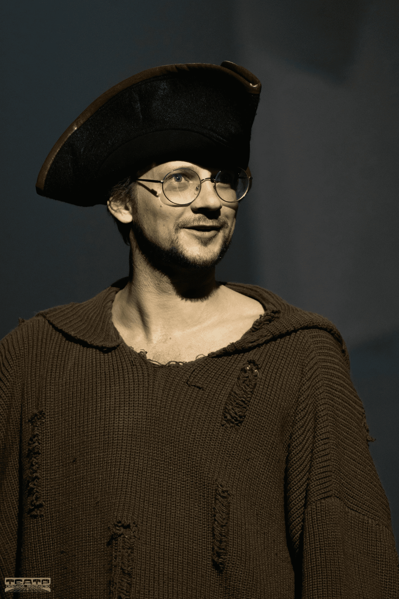 Через сценографию решается и ещё один читаемый приём авторов постановки: главный герой на пустой сцене в «режиссёрском» кресле. Он из породы тех теплокровных живых и творческих людей, что выступают авторами сценария проживания своего времени. И хозяевами пространства. Из тех, кто командует предложенными обстоятельствами, а не влечётся рабски-покорно в новый день, ссылаясь на заведённое: «Не мы такие, жизнь такая».
