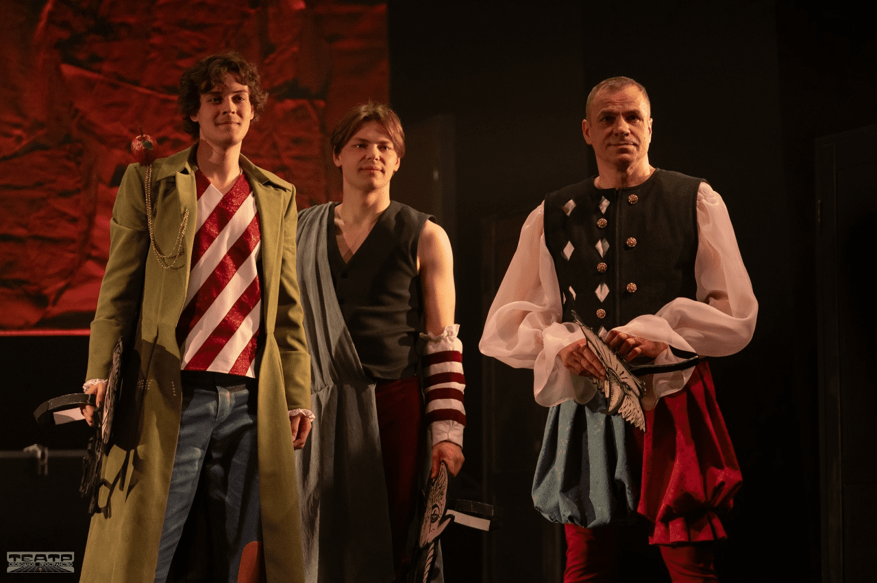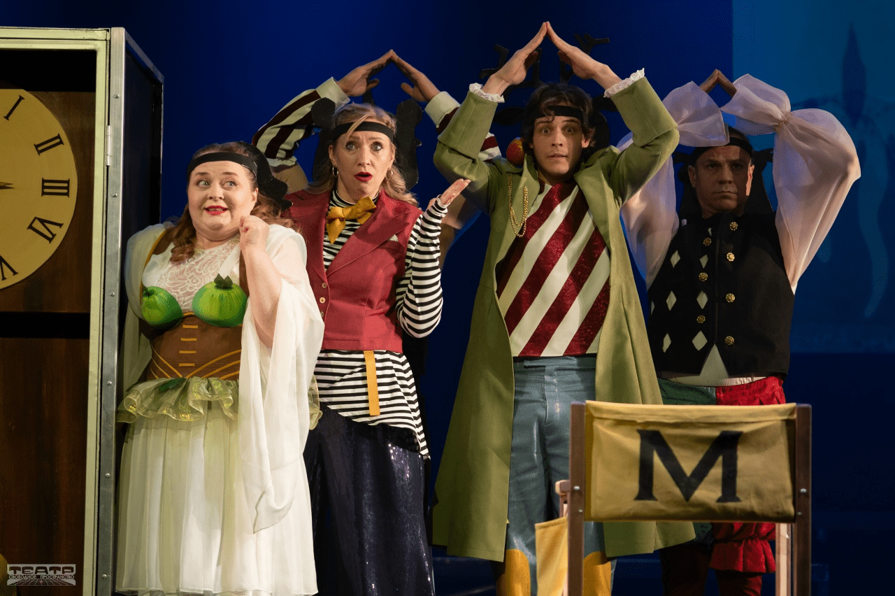 В общую «игру на полёт воображения» вовлечены не только все артисты, но и все технические службы театра. Следим за костюмами, их покроем и сочетанием цветов – они в этом спектакле тоже говорящие.