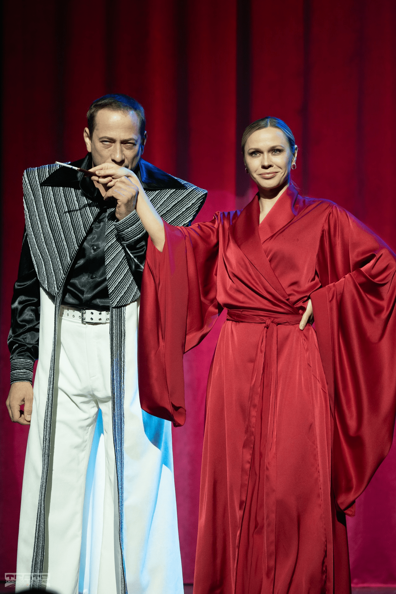 Во втором акте спектакля элегантно-холодная Якобина фон Мюнхгаузен, по прихоти родителей ещё с пелёнок уготованная барону в жёны, повёрнутая на сословных приличиях и статусе, сама займёт кресло «режиссёра» с опознавательной буквой М. Этот символический переход из второстепенной на главную роль она сыграет вдохновенно!