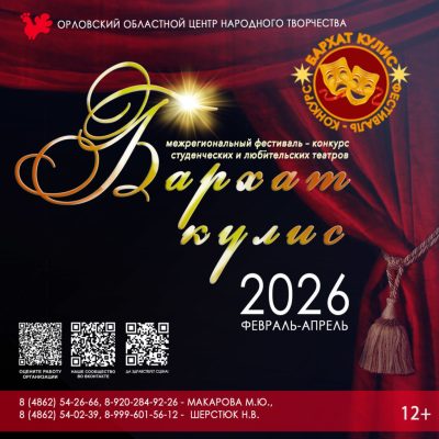 Талантливых орловцев приглашают ощутить и вдохновиться «Бархатом кулис». Областной фестиваль-конкурс студенческих и любительских театров с таким интригующим названием начнёт принимать заявки 2 февраля 2026 года. Данный этап продлится до 15 марта. Заявку необходимо подать в электронном формате, размещённой по ссылке.