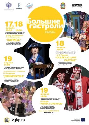 Так, самарцы везут к нам спектакли «Лариса», «Сказка о царе Салтане», «Дюймовочка» и «Конёк-Горбунок».