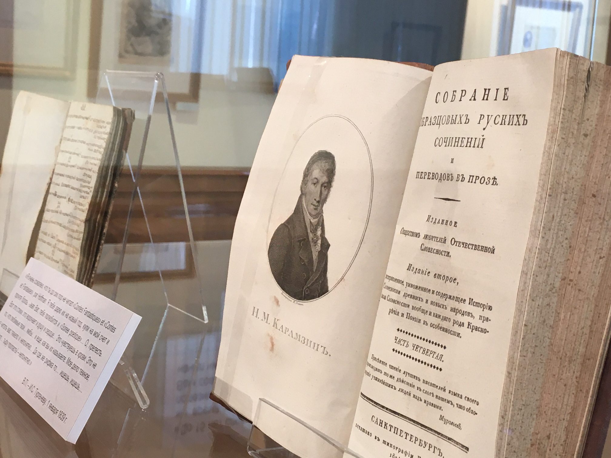 «Представлены и книги из детского круга чтения Тургенева и его братьев, форзацы которых испещрены детскими рисунками – фигурками и профилями людей. Книги повзрослевшего Тургенева хранят на себе тонкие карандашные заметки и аккуратные отчёркивания ногтем. Это «Следопыт» Дж.Ф. Купера, «Оливер Твист» Ч. Диккенса, «Иллюстрации к Шекспиру и древние нравы» Ф. Доуса»,— рассказали организаторы выставки.