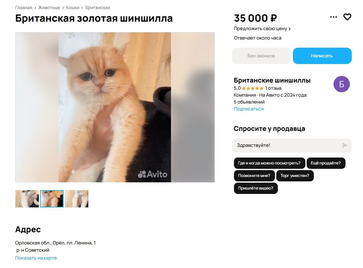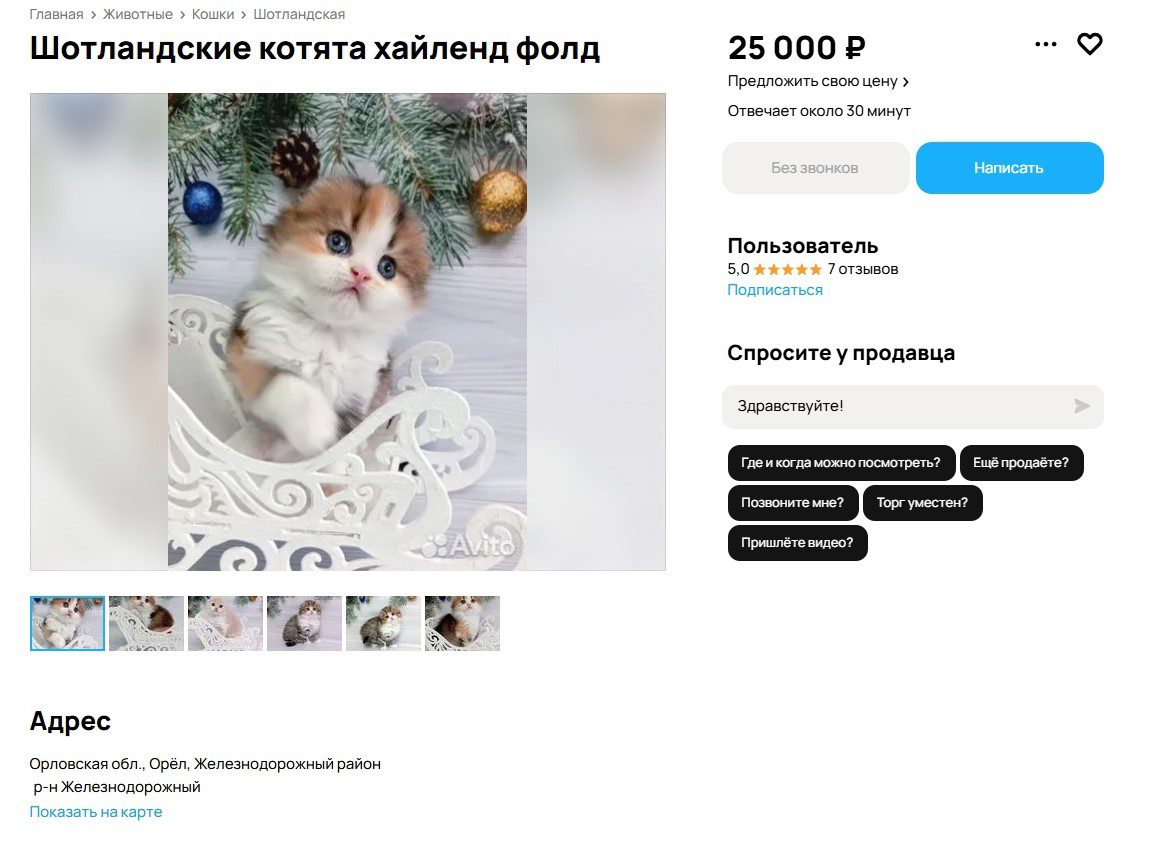 В Орловской области можно найти десяток объявлений о продаже котят-«шотландцев». Стоимость породы может достигать 25 тысяч рублей. Стоит отметить, что почти все авторы объявлений указывают, что котята очень воспитанные, умные и ласковые.