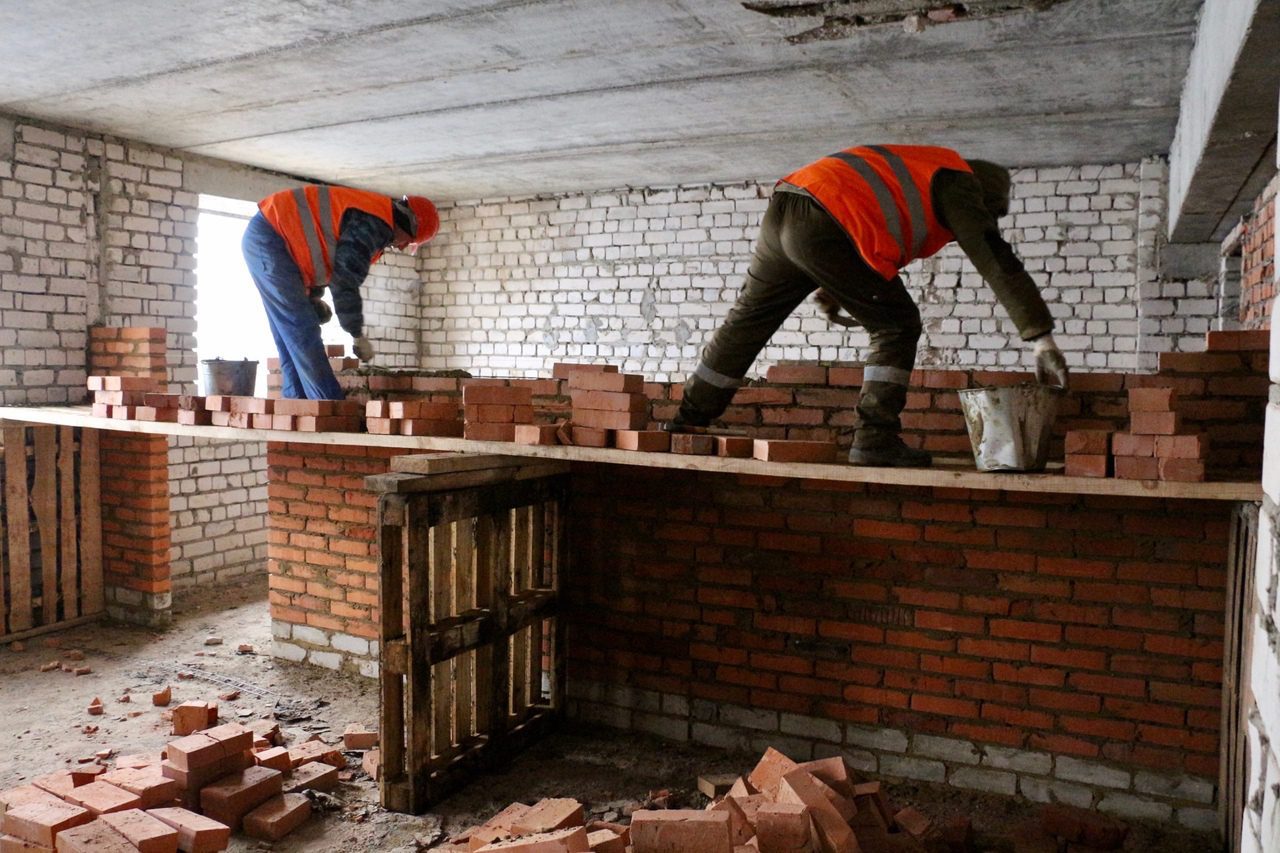 Сообщается, что ведутся монтажные работы, на объекте трудятся около 50 человек. Дополнительно возводятся две пристройки. Правда, на фото кипящей работы строителей не видно. Максимум запечатлены усилия восьми человек.