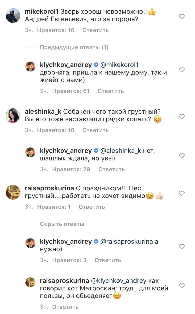 Андрей Клычков приютил бездомную собаку и встретил Первомай на грядках