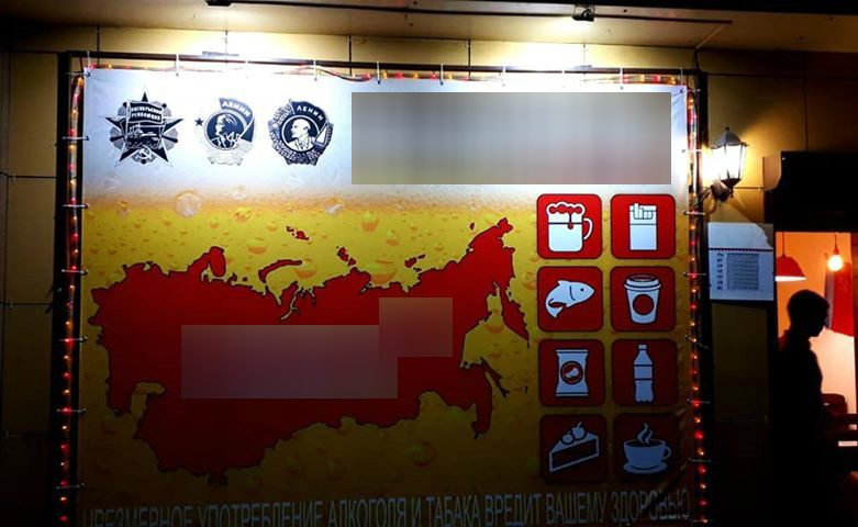 УФАС России по Орловской области установило нарушение требований Федерального закона «О рекламе» в вывеске питейного заведения на Комсомольской улице города Орла. Там изображено несколько советских орденов, которые, судя по всему, должны вызывать ностальгию у любителей пива.