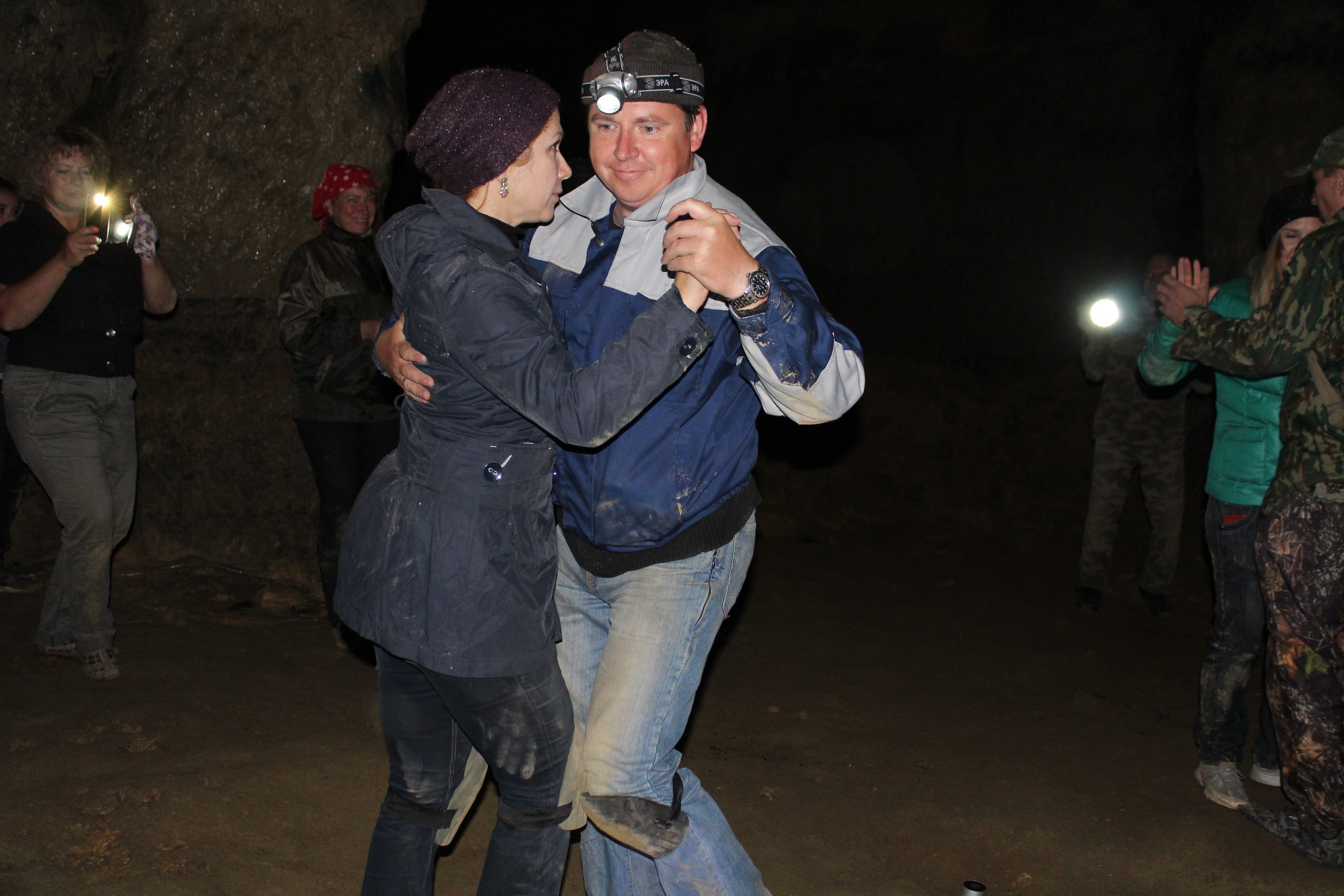 В сопровождении опытного проводника и историка Михаила Сахарова орловцы спустились на глубину 30 м, прогулялись по километровым галереям, забрались на «орлиное гнездо» – скалистый выступ в пещере и «под звуки тишины» станцевали танго под сводом каменных потолков.