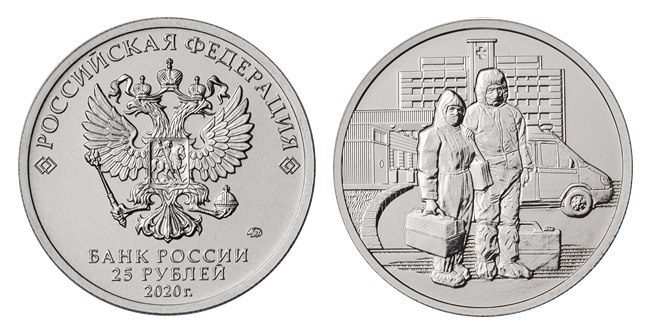 Накануне Центральный банк России выпустил в обращение 25-рублёвую монету из недрагоценных металлов, посвященную самоотверженному труду медицинских работников.