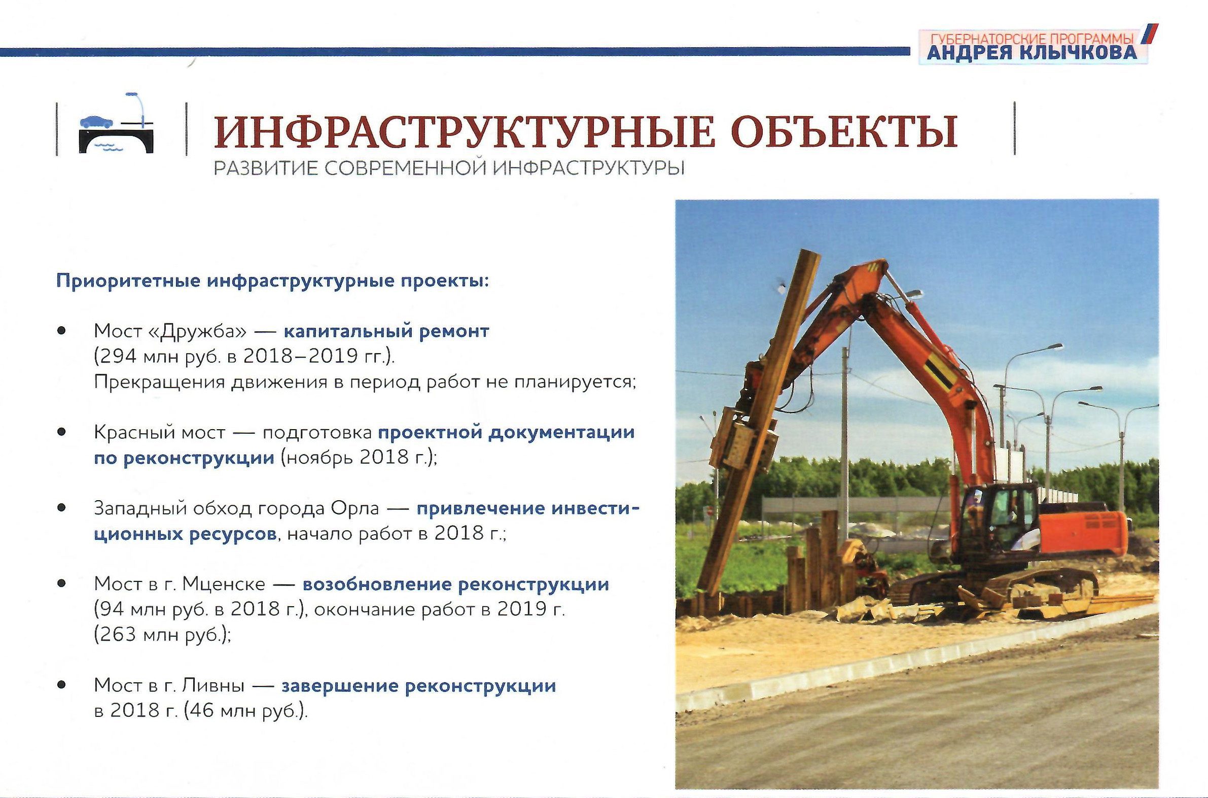 - Привлечение инвестиционных ресурсов и начало работ по Западному обходу г. Орла в 2018 году;