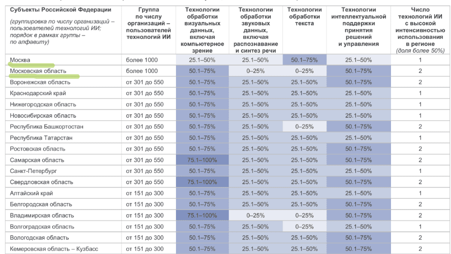 – Применение технологий ИИ в России характеризуется значительной географической концентрацией, что напрямую связано с экономическим потенциалом регионов, – констатировали авторы исследования. Чем развитее, богаче и густонаселённее регион, тем выше процент использования ИИ.