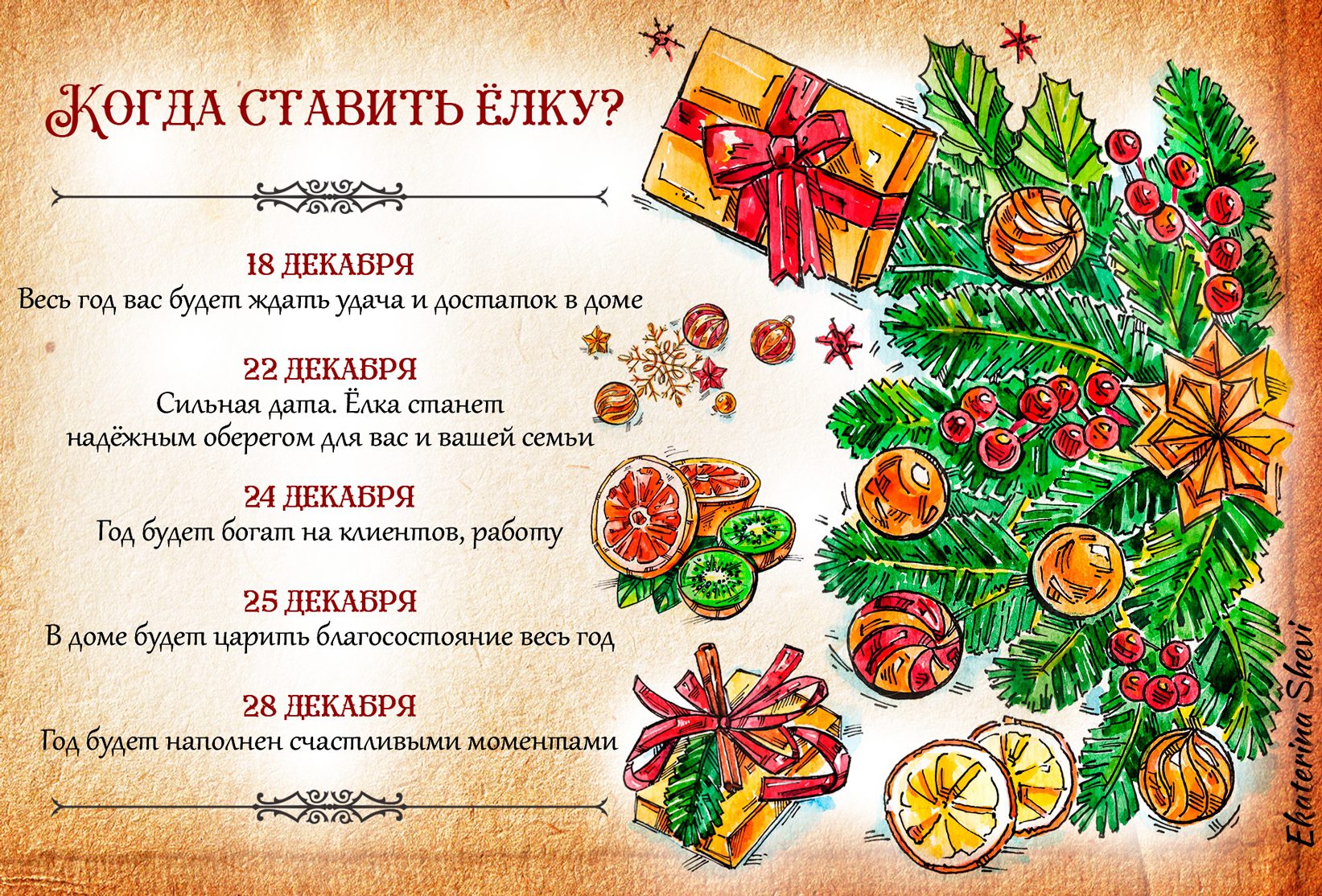Например, 18 декабря — «весь год вас будет ожидать удача и достаток в доме»; 22 декабря — «ёлка станет сильным оберегом для дома» и т.д.