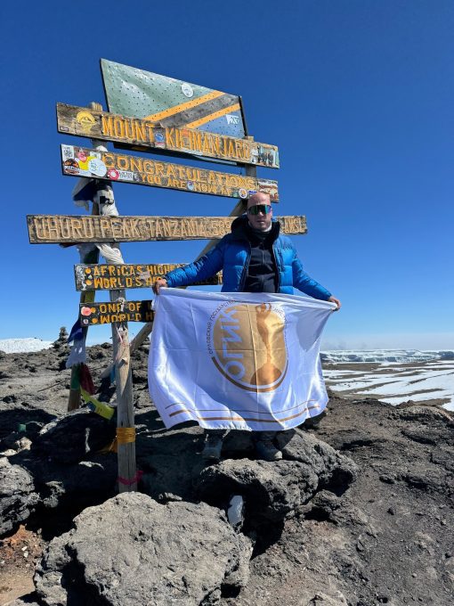 17 августа он совершили восхождение на высочайшую вершину Африки – вулкан Килиманджаро (5895 метров) и установил на ней флаг ОГИК.