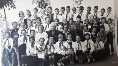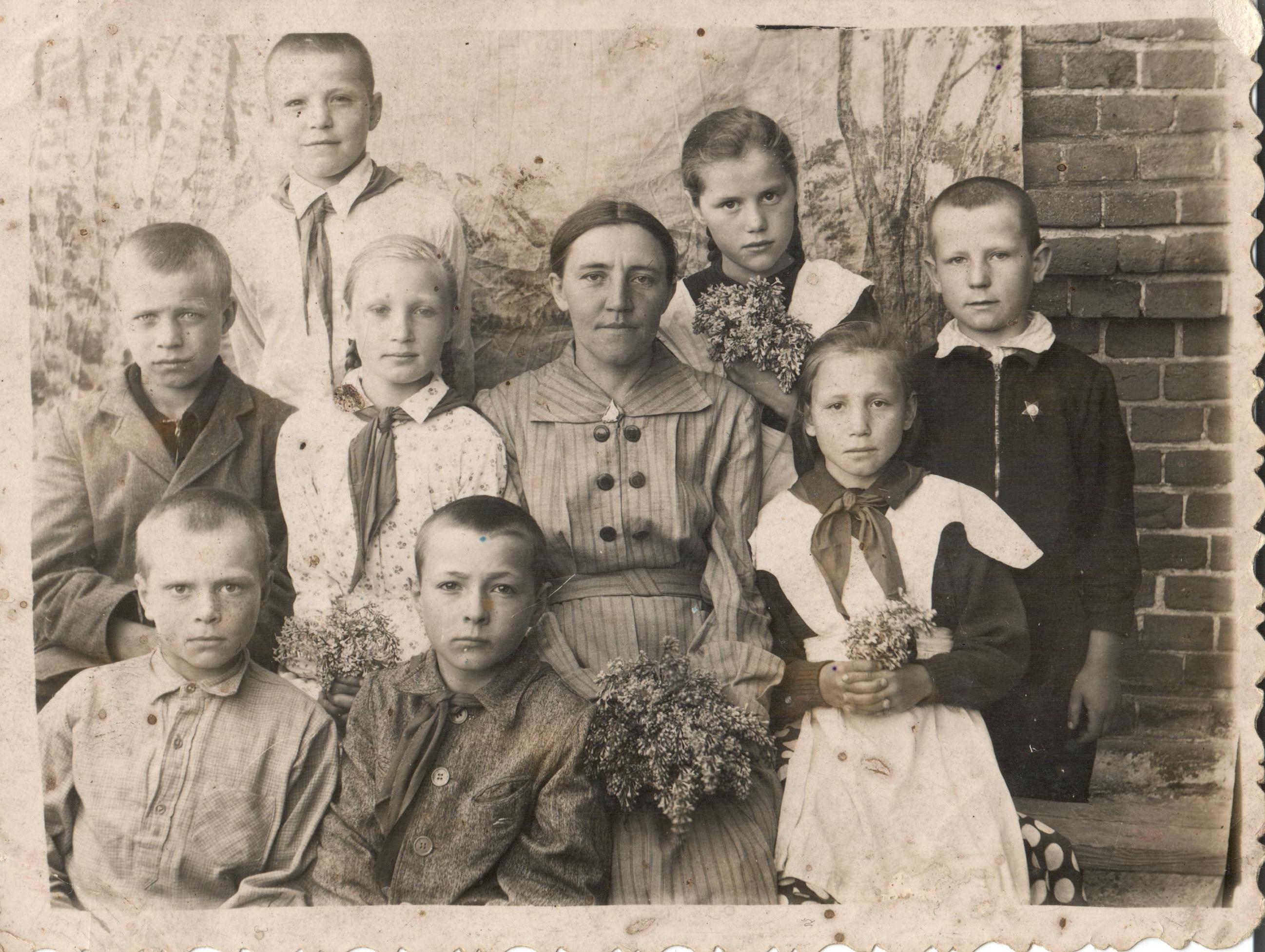 – Снимок сделан в 4 классе. Мою первую учительницу звали Александра Тимофеевна (на фото). С нами она была, как наседка с цыплятами, заботилась о каждом. И когда мы переходили от неё в 5 класс, все плакали – вот так сильно её любили.