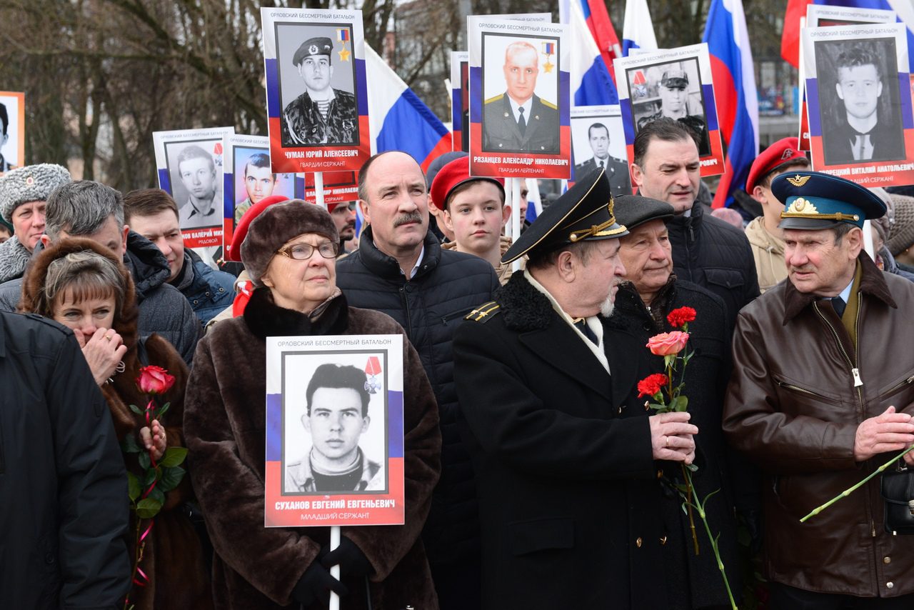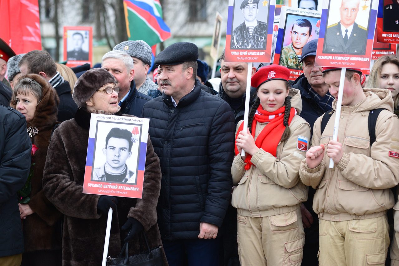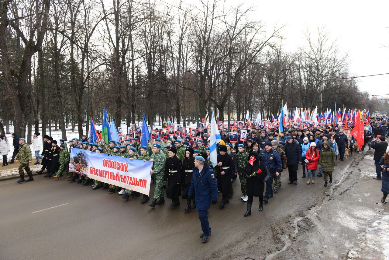 В колонне «Бессмертного батальона» прошли ветераны боевых действий, родные и близкие погибших воинов-интернационалистов, сотрудники правоохранительных органов, представители областной и городской власти, общественных организаций, духовенства, поисковики, волонтёры, жители города Орла.