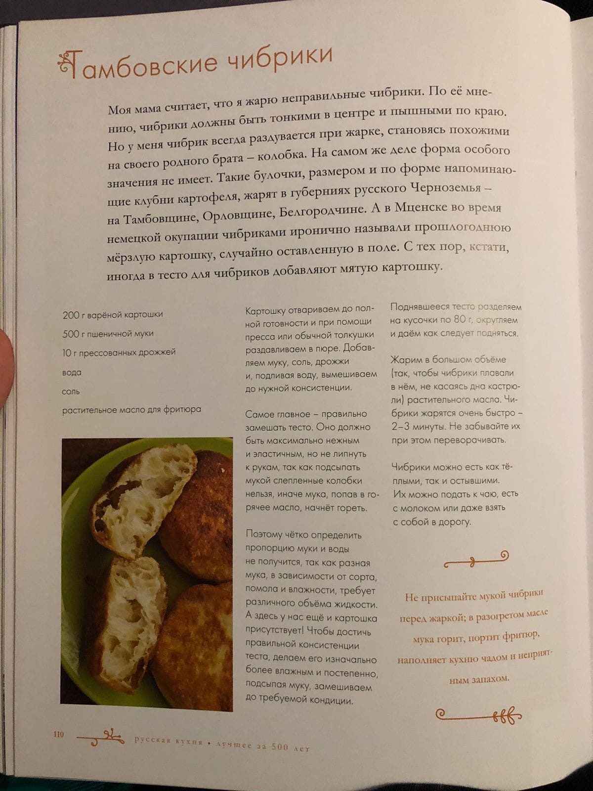В книге шла речь о «тамбовских чибриках». Это маленькие булочки. В разных регионах их готовят по-разному. В книге Пискунова говорится о том, как это делали в Орловской области, в частности, в городе Мценске.