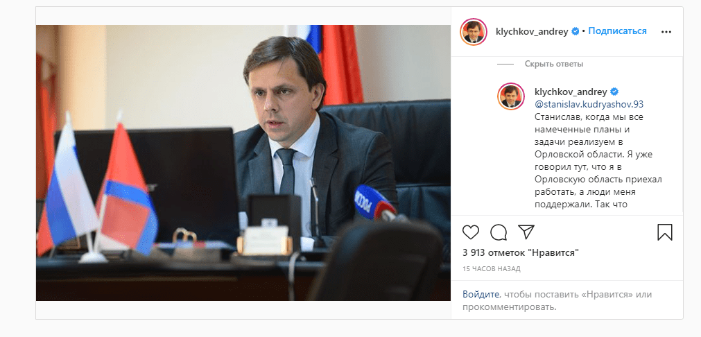 «Станислав, когда мы все намеченные планы и задачи реализуем в Орловской области. Я уже говорил тут, что я в Орловскую область приехал работать, а люди меня поддержали. Так что работаем дальше», – сообщил Клычков, которому явно не откажешь в амбициях и чувстве юмора.
