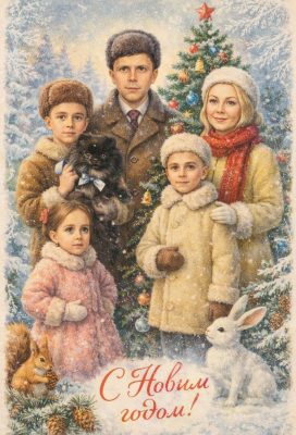 Если быть точнее, то ИИ создал открытку в советском стиле, на которой губернаторская чета в полном составе.