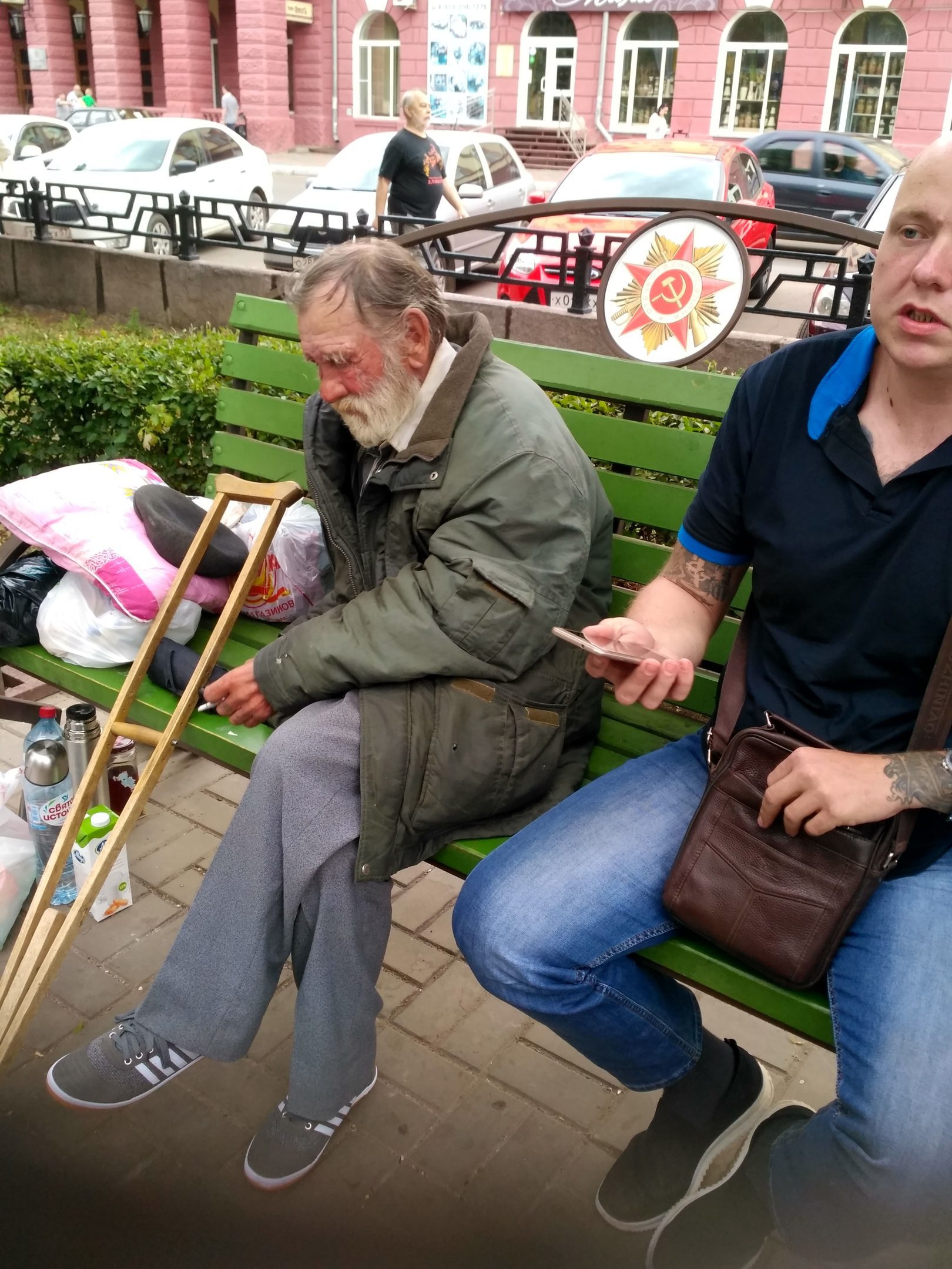 Накануне практически во всех орловских пабликах появился пост о старике-бродяге, живущем в сквере Танкистов. История написана от первого лица, от простого орловца, который, как и мы все, по многим причинам не обращает внимания на людей, нуждающихся в помощи: «Проходил я мимо сквера много раз, не обращая внимания на старика, ведь БОМЖей сейчас, как грязи. И вот однажды утром приехала к нему скорая помощь и увезла в больницу. Прошла неделя и снова старик в сквере на своей лавочке. Подлечили недельку и выпустили на вольные хлеба побираться дальше. Старик сильно болен, мало двигается, больше лежит на лавке. У него проблемы с ногами, передвигается только с помощью костыля. Я не видел у него когда-либо еды и воды, за счёт чего он ещё жив непонятно. Сегодня я не выдержал и подошёл просто поговорить. Он охотно идёт на контакт. Он совершенно не маргинал, как можно было бы подумать сначала. Вменяемый, адекватный человек, попавший в трудную ситуацию. Рассуждает здраво и даже с оптимизмом».