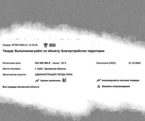 Соответствующий тендер был объявлен 14 октября и в течение ближайших недель будет вестись набор заявок от потенциальных подрядчиков. Цена контракта – 352,3 млн рублей. Также наконец-то стало известно, когда орловцы смогут увидеть благоустроенную территорию.