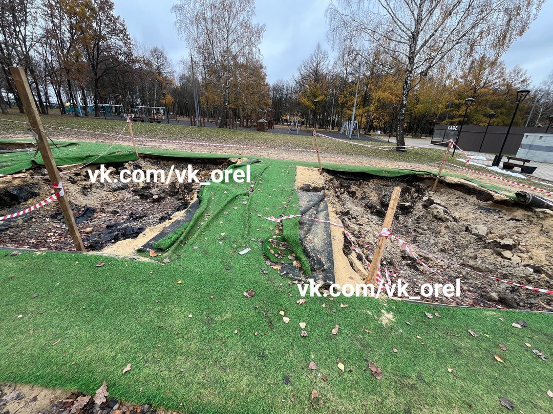 «Как будто беспилотники упали»: орловцы возмущены безобразными воронками вместо новых батутов в Парке Победы