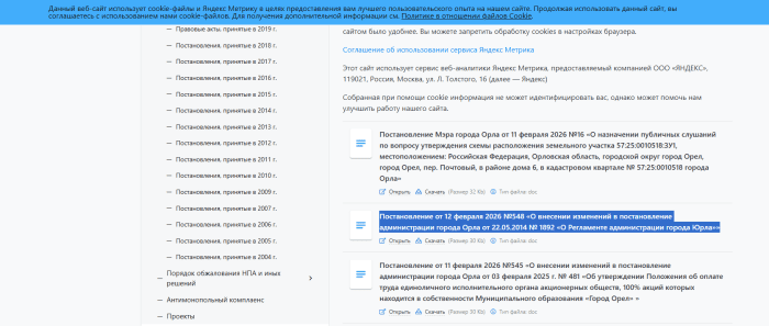 Звучит оно буквально так: «О внесении изменений в постановление администрации города Орла “О регламенте администрации города Юрла”».