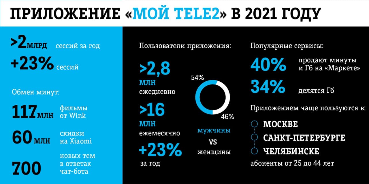 В 2021 году Tele2 активно развивала формат «сторис» в приложении. Здесь появились опросы, видеоконтент, подарки, интерактивные игры, индивидуальные итоги года клиента и даже адвент-календарь. Приложение «Мой Tele2» доступно в AppStore, GooglePlay и AppGallery.