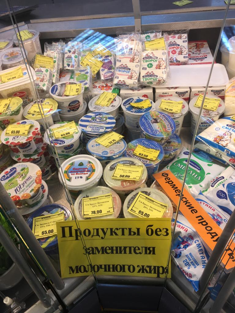 Напомним, с 1 июля по новым правилам размещение молочных, молочных составных и молокосодержащих продуктов в торговых залах и других местах продажи должно осуществляться так, чтобы можно было визуально отделить их от других пищевых продуктов, а также сопровождаться информационной надписью: «Продукты без заменителя молочного жира». Однако поход корреспондента «ОрёлТаймс» показал, что пока в орловских магазинах не появилось визуальное отделение молочных продуктов с надписью «Продукты без заменителя молочного жира» от «собратьев» с растительными жирами.