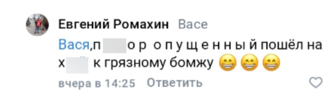 - Пи…р опущенный, пошёл на … к грязному бомжу;
