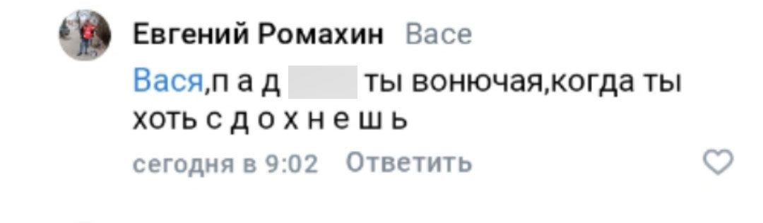 — Заскринила и этот коммент. Отошлю Клычкову и Франко, пусть учтут, какой у них … на балансе числится. А ты бы изучил на досуге, коль мозгов хватит, уголовные статьи за оскорбления, — обратилась к коммунисту орловчанка.