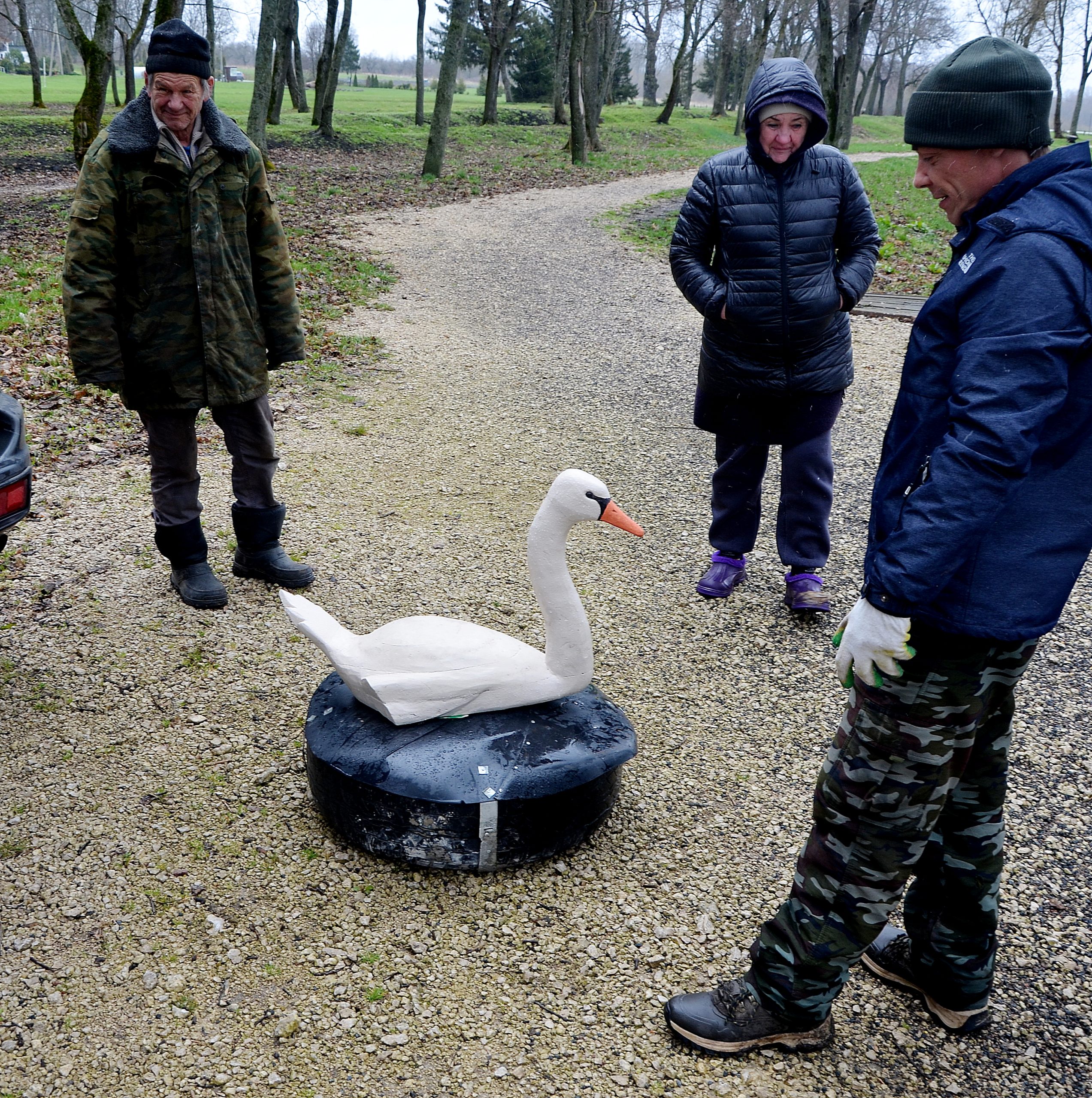 Связавшись с главой Никитинской сельской администрации Анатолием Красильниковым и получив разрешение на размещение лебедя на Михайловском водохранилище, Гордеев с помощью управляющей усадьбой «Мансуровский парк» Валентины Печуриной утром 24 апреля 2026 года завершил операцию по установке необычного памятника водоплавающей птице на самом живописном водохранилище Новодеревеньковского района Орловской области!