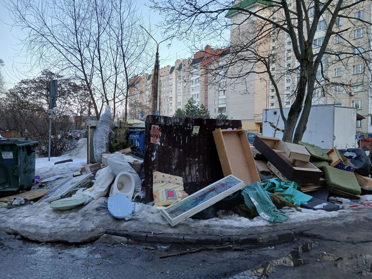В редакцию ОрелТаймс обратились жители Советского района Орла. В спальном микрорайоне по ул. 8-е Марта и Пожарная вот уже несколько лет плохо вывозят мусор с одной из контейнерной площадок. Люди со всего района тащат сюда старую мебель, технику, унитазы, ёлки и за считанные дни пространство рядом с торговым центром начинает напоминать свалку.