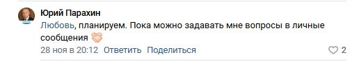 «Планируем. Пока можно задавать мне вопросы в личные сообщения», — ответил Юрий Парахин.