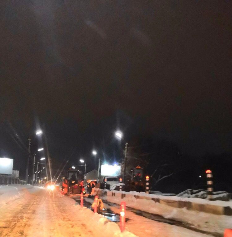 Орловцы делятся в социальных сетях фотографиями ремонта моста «Дружба», прошедшего минувшей ночью. На фото отчётливо видно, как рабочие укладывают асфальт в снег.
