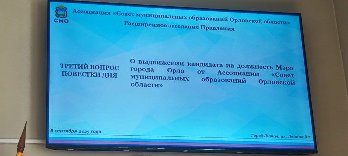 На расширенном заседании правления ассоциации «Совет муниципальных образований», которое прошло в Ливнах, определились с кандидатурой на должность мэра Орла.