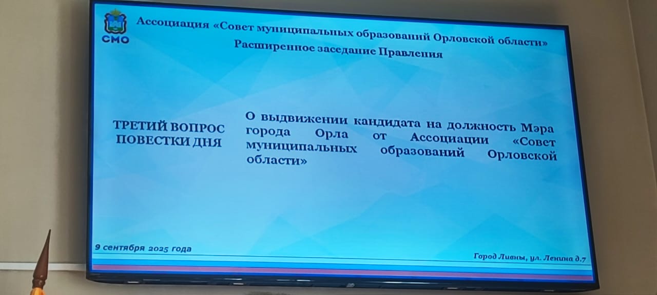 На расширенном заседании правления ассоциации «Совет муниципальных образований», которое прошло в Ливнах, определились с кандидатурой на должность мэра Орла.