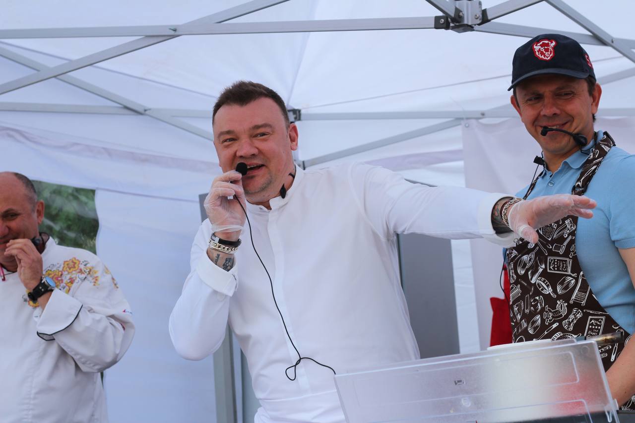 На фестивале в Орле Клычков вместе с шеф-поварами накормил 400 горожан свиным языком в луковом варенье