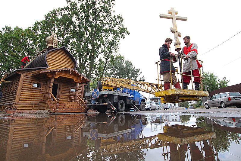 На купол храма в честь святого благоверного князя сербского Лазаря водрузили крест.