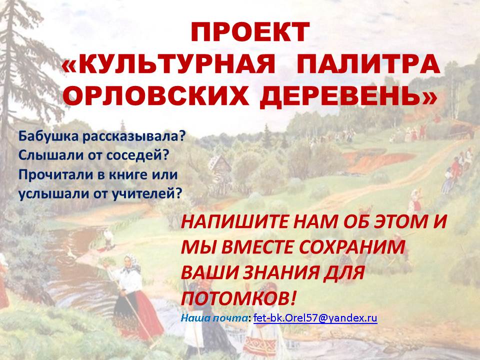 Опишем традиции орловских деревень вместе!