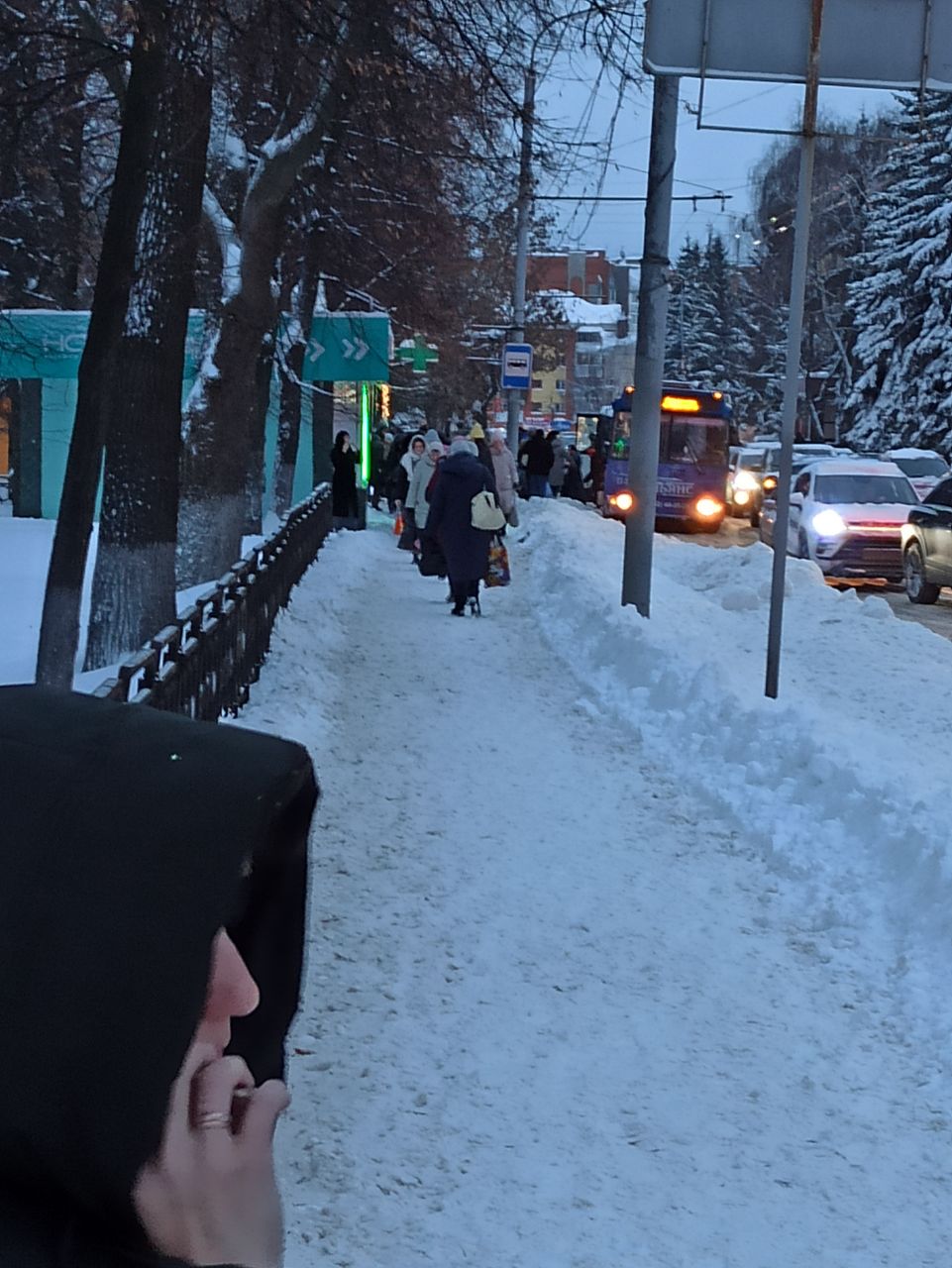 – Мы, как пингвины – идём строем. Снег даже на мосту оказался не расчищен и множество людей идут по узкой тропинке, – пожаловалась ОрелТаймс Дарья.