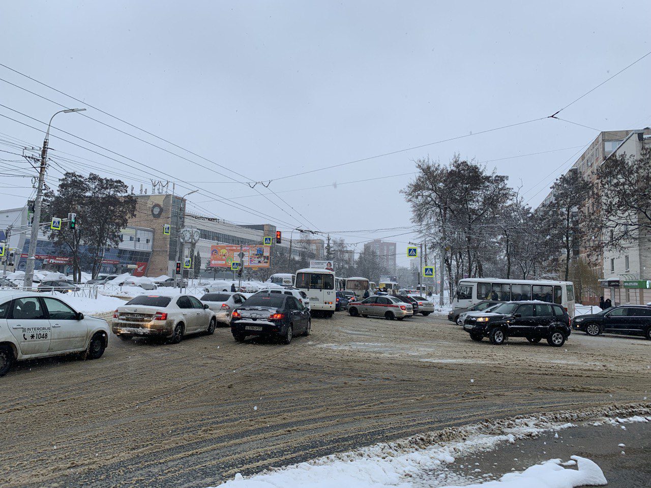 Начавшийся ночью снег парализовал автомобильное движение в областном центре.
