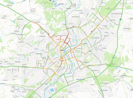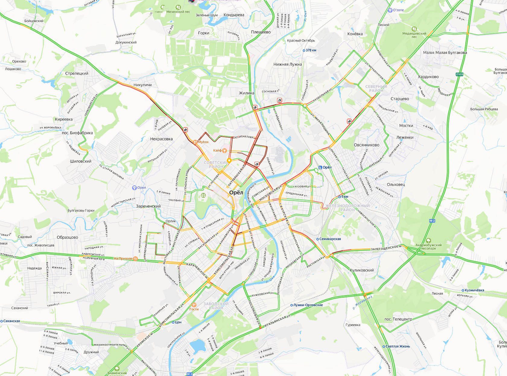 С самого утра пробки наблюдаются как в центре Орла, так и на окраинах. Карты Яндекса горят красным цветом.