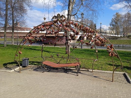 Сквер, расположенный между «Седьмым ноября» и набережной, обрамляющей левый берег Орлика, называется «Сквер семьи». Забавно, но установленная в этом сквере декоративно-прикладная скамья, служащая одновременно и арт-объектом, и действующей скамейкой, на которую можно присесть без риска осквернить пятой точкой произведение искусства, называется «Скамья примирения», что недвусмысленно указывает на довольно узкую специализацию места отдыха: не появление новых семей, а сохранение уже существующих, но переживающих в отношениях некий кризис.