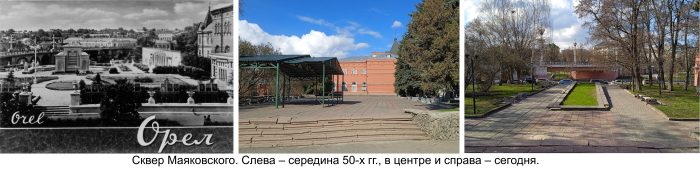 Территория между тыльной их стороной и набережной Орлика коммунальным уютом никогда не отличалась, хотя всеми его атрибутами, казалось бы, располагала: и дорожки наличествовали, и скамейки, и ухоженные деревья. И всё равно «одним из любимых мест отдыха орловцев» это пространство никогда не было. Возможно, людей отпугивала аура, создаваемая расположенным в «устье» небольшого парка невообразимо неухоженного общественного туалета. Представьте, это всё – тоже сквер. И, словно в издёвку, называется он «Сквер Коммунальников», аж с 1946 года!