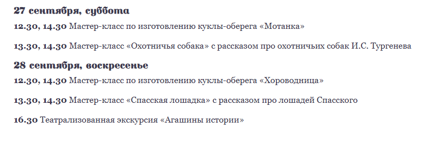 Помимо красоты природы, в Спасском всегда есть чем заняться. Можно посетить экскурсию по Дому-музею Ивана Сергеевича Тургенева или принять участие в познавательных мастер-классах. прослушать интересную лекции.
