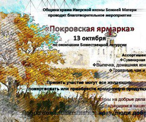 В орловском храме Иверской иконы Божией Матери 13 октября пройдёт «Покровская ярмарка». Она начнётся после литургии.